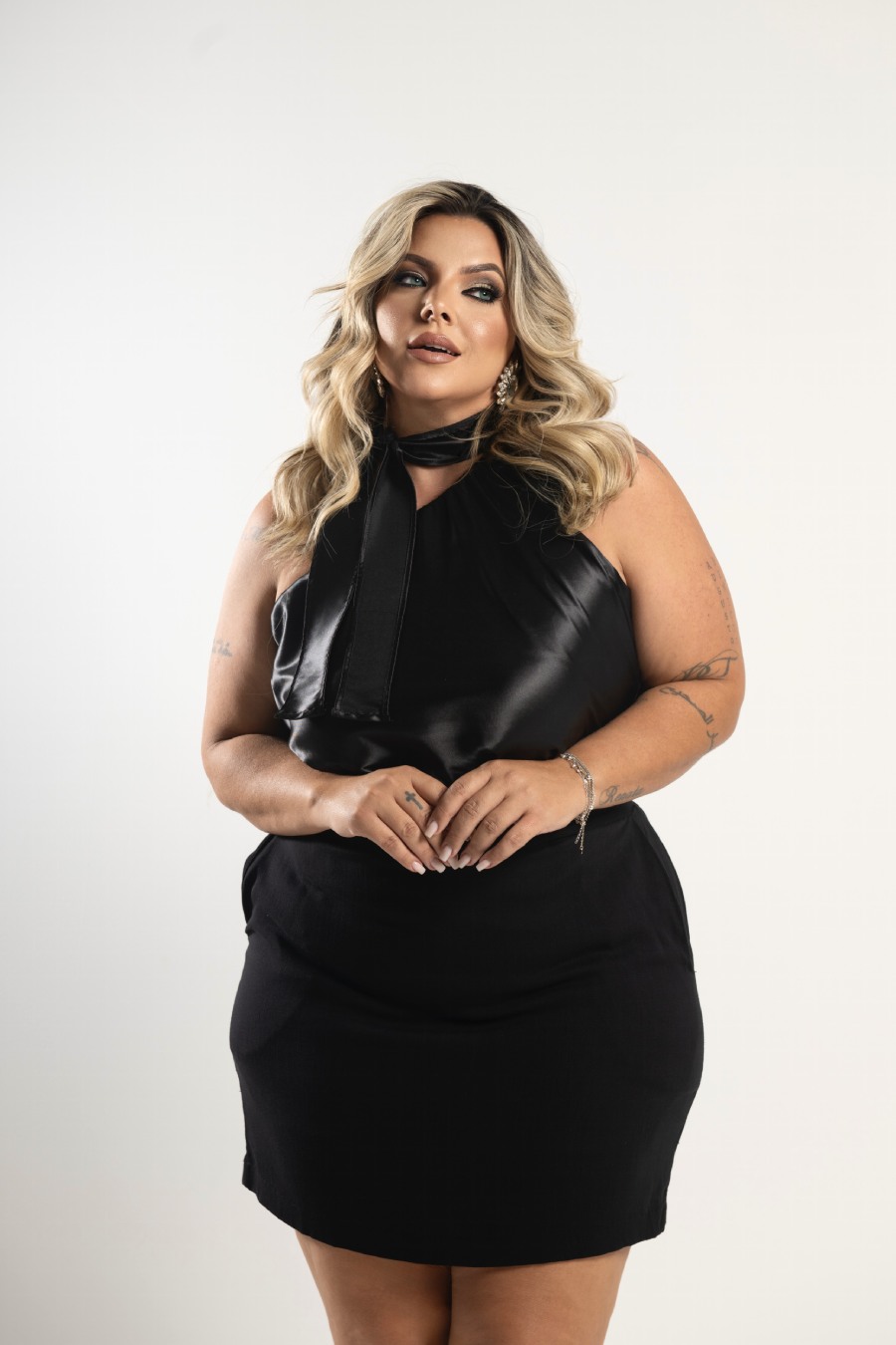 Blusa Cetim Preto Quality Moda Plus Size Alto mlj