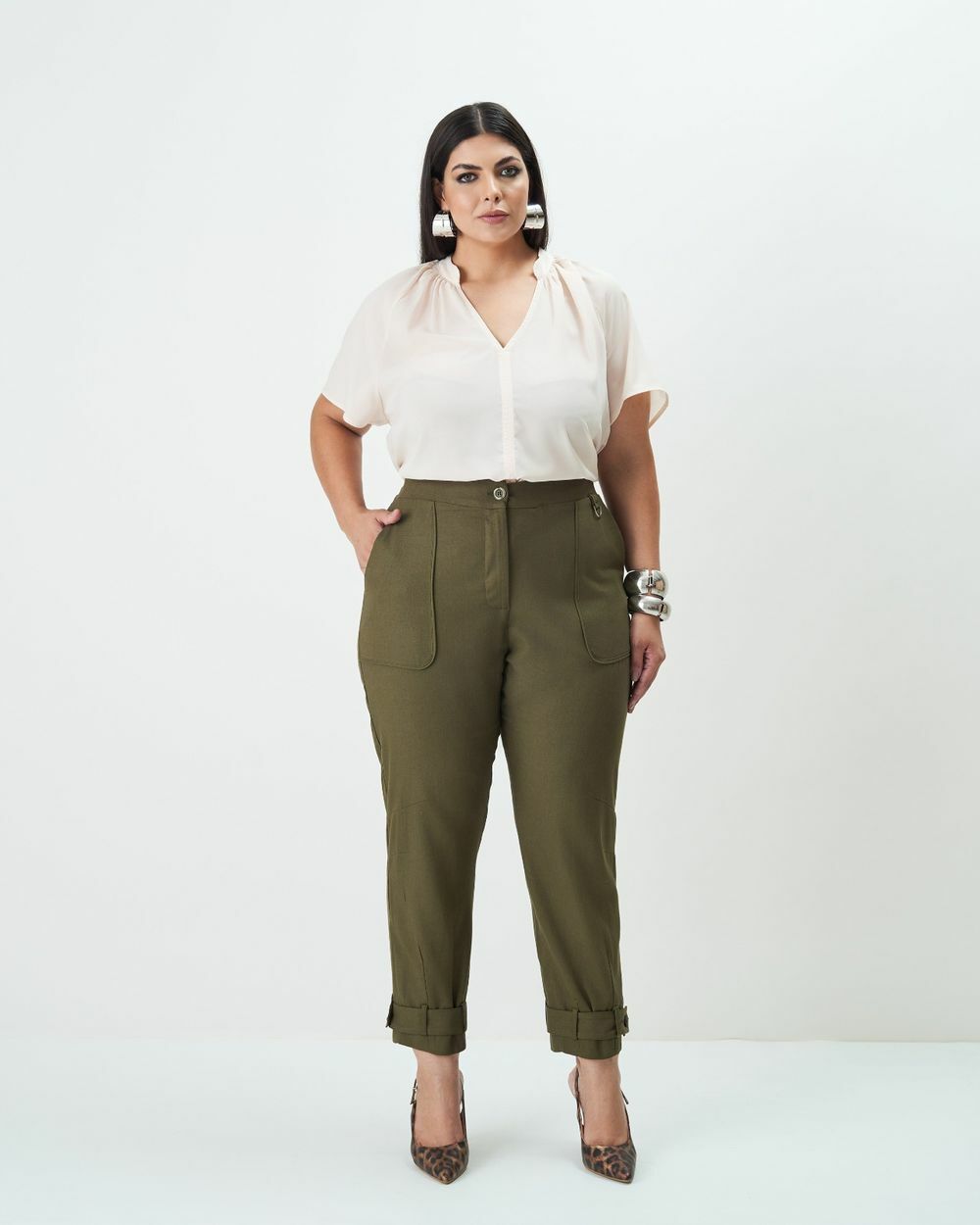 Calça com Pences Verde Quality Moda Plus Size Outono qbl Preview