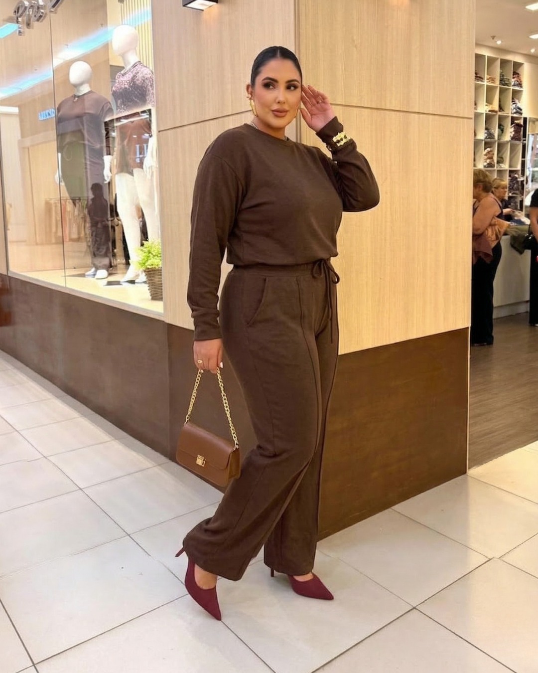 Conjunto Blusa ML e Calça Comfy Tricot Leve Marrom Quality Moda Plus Size Outono mca loja