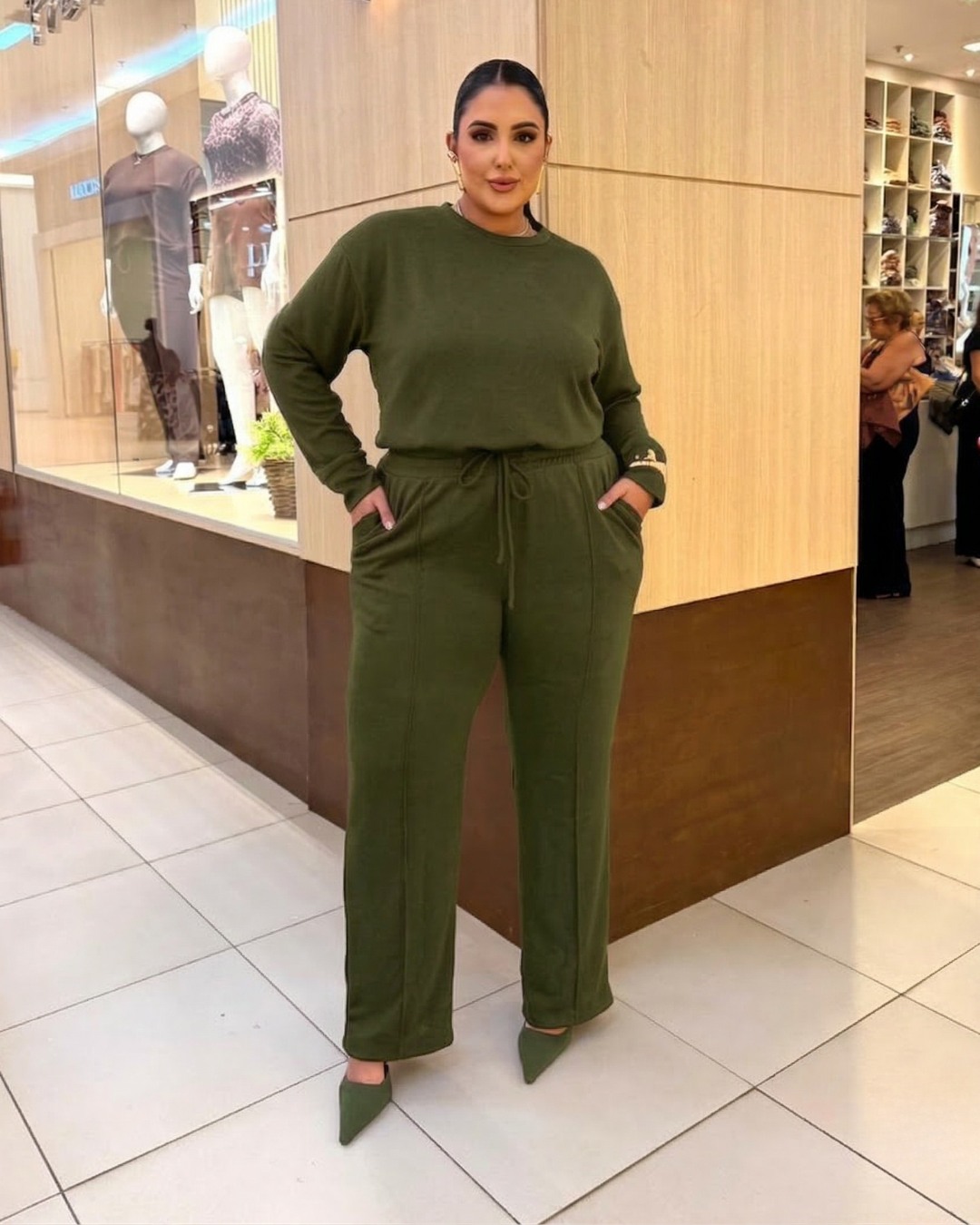 Conjunto Blusa ML e Calça Comfy Tricot Leve Verde Quality Moda Plus Size Outono mca loja
