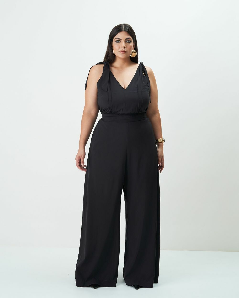Macacão Pantalona com Nervuras Preto Quality Moda Plus Size Outono qbl Preview