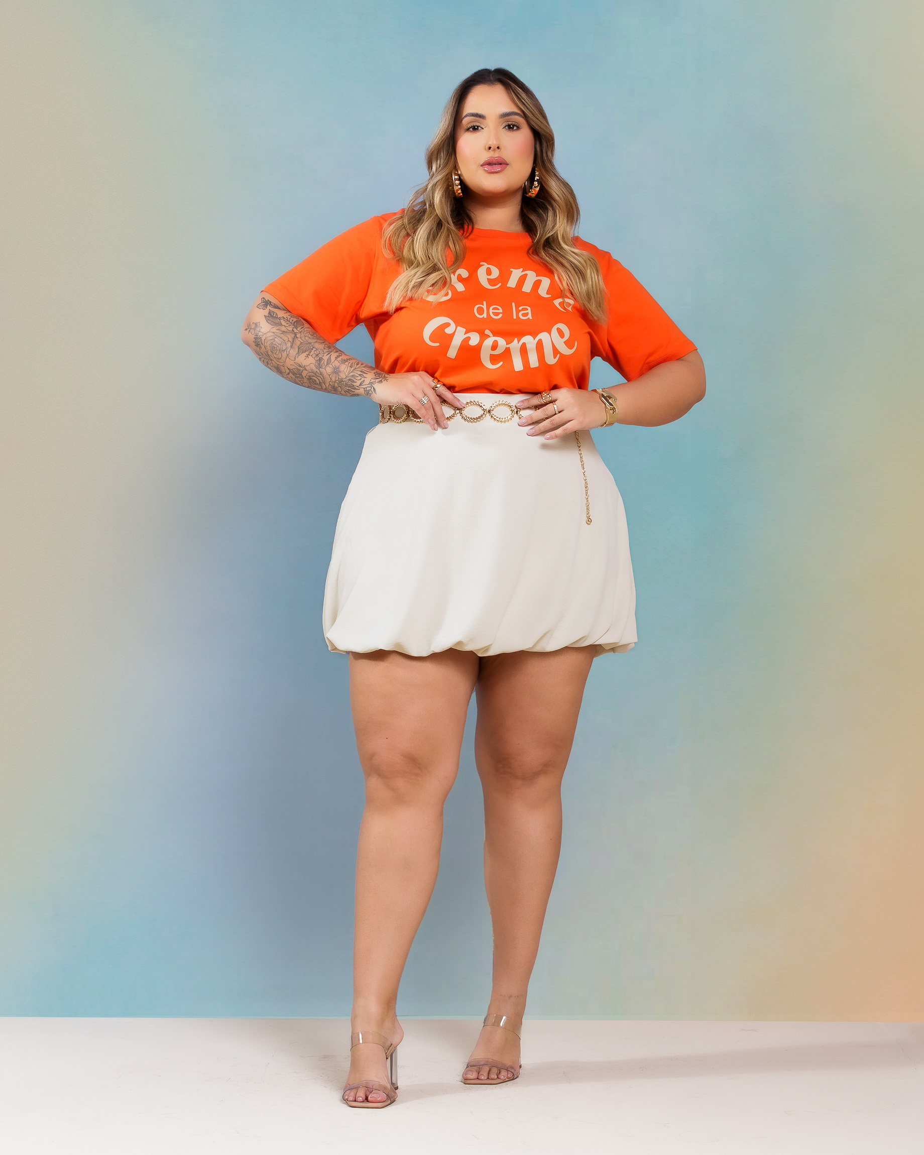 Saia Balonê Bege Golden Quality Moda Plus Size Divas Sale Loja