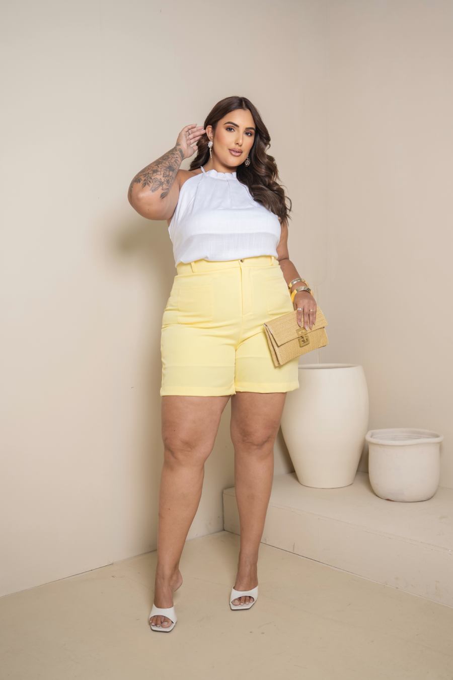 Shorts Luna Amarelo Quality Moda Plus Size Milanjus Primavera