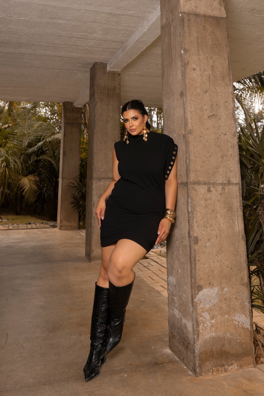 Vestido Assimétrico com Ilhós Preto Quality Moda Plus Size dvs Outono Preview Cold