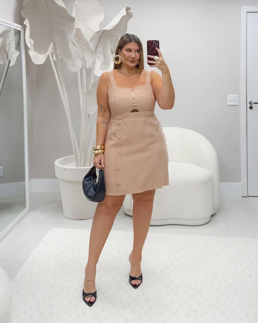 Vestido curto com botoes
