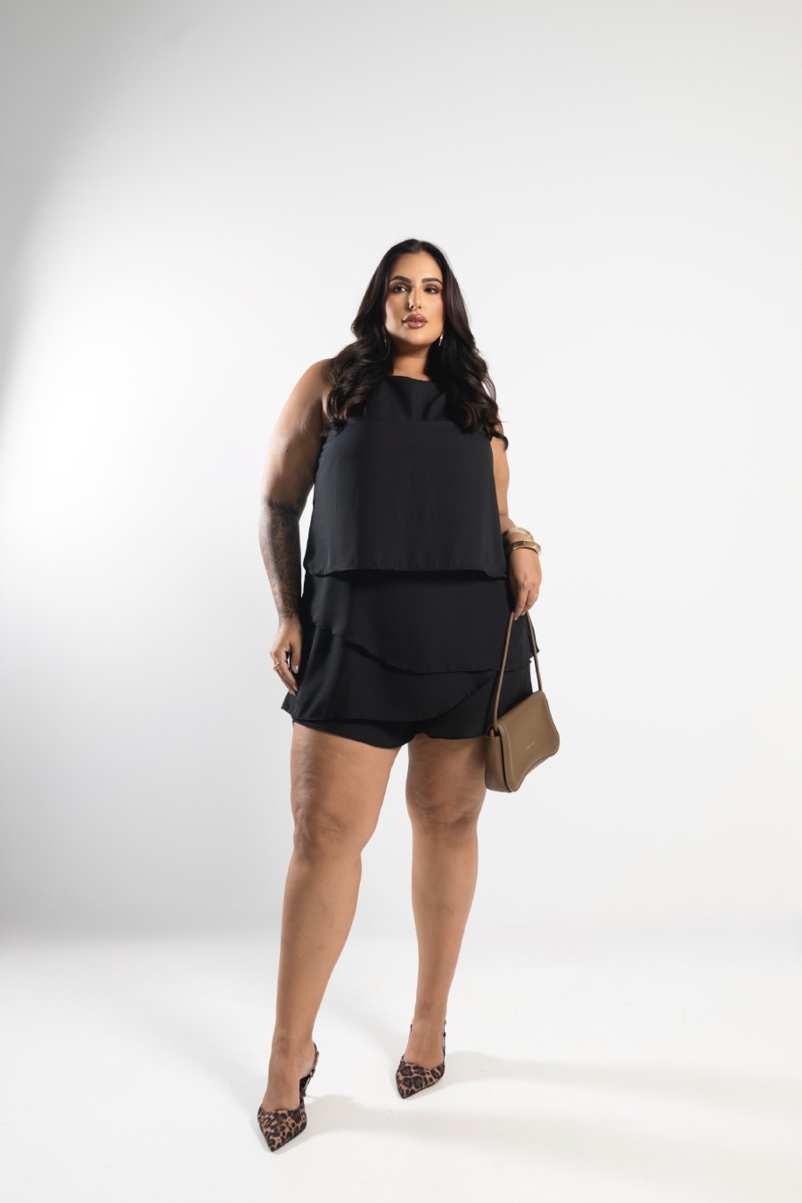 Vestido Macaquinho Preto Quality Moda Plus Size Alto mlj