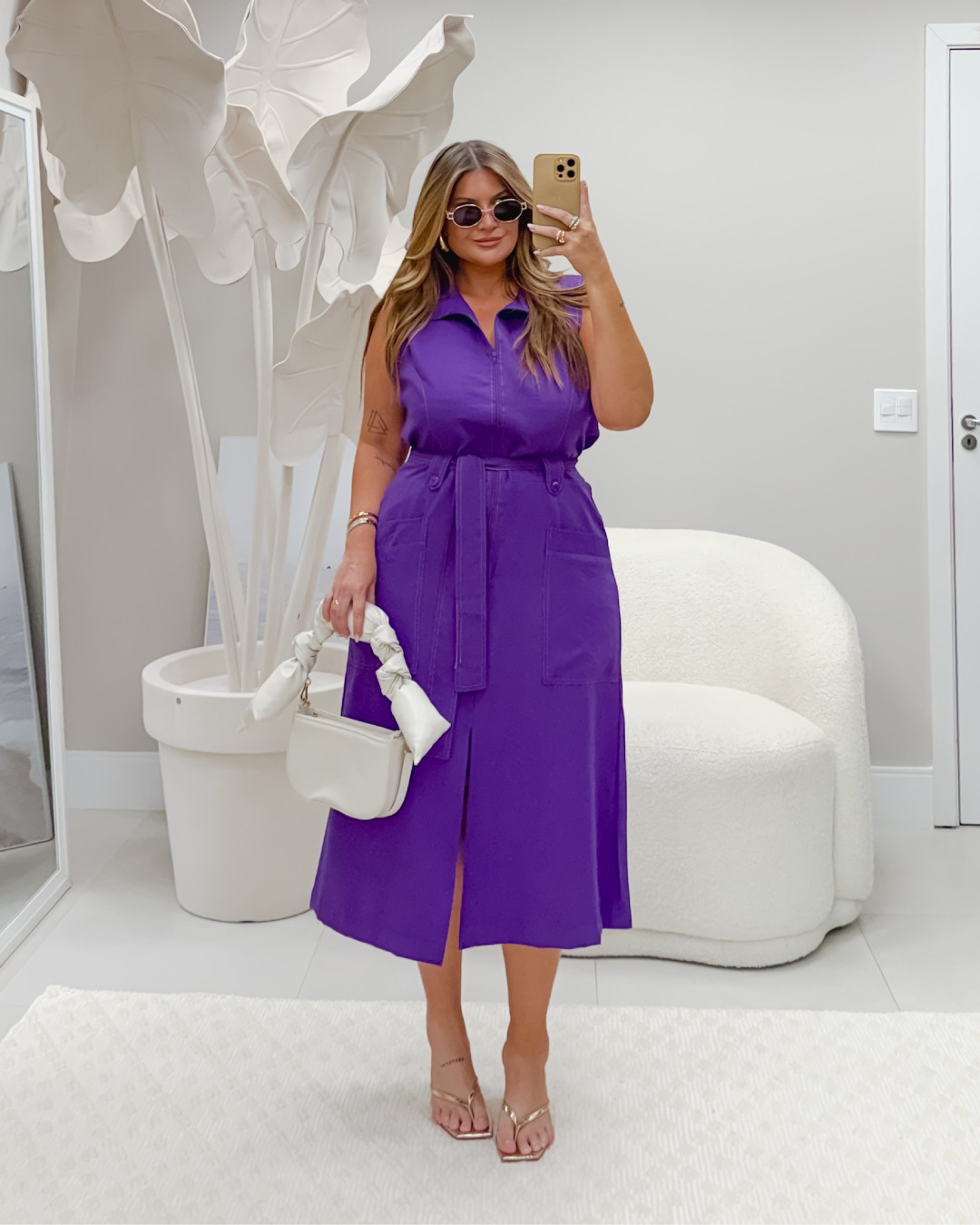 Vestido Midi Alfaitaria Roxo Quality Moda Plus Size Alto mlj